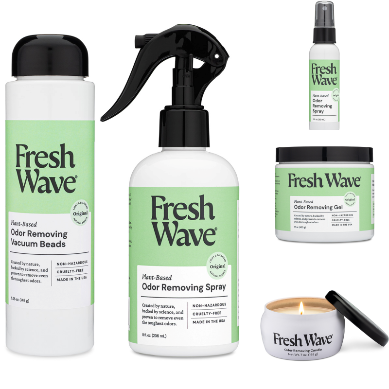 Fresh Wave is an all-natural solution for naturally eliminating household odor. No masking fragrances. No harsh chemicals. Available in sprays, candles, continuous release crystal gel forms and vacuum pearls.