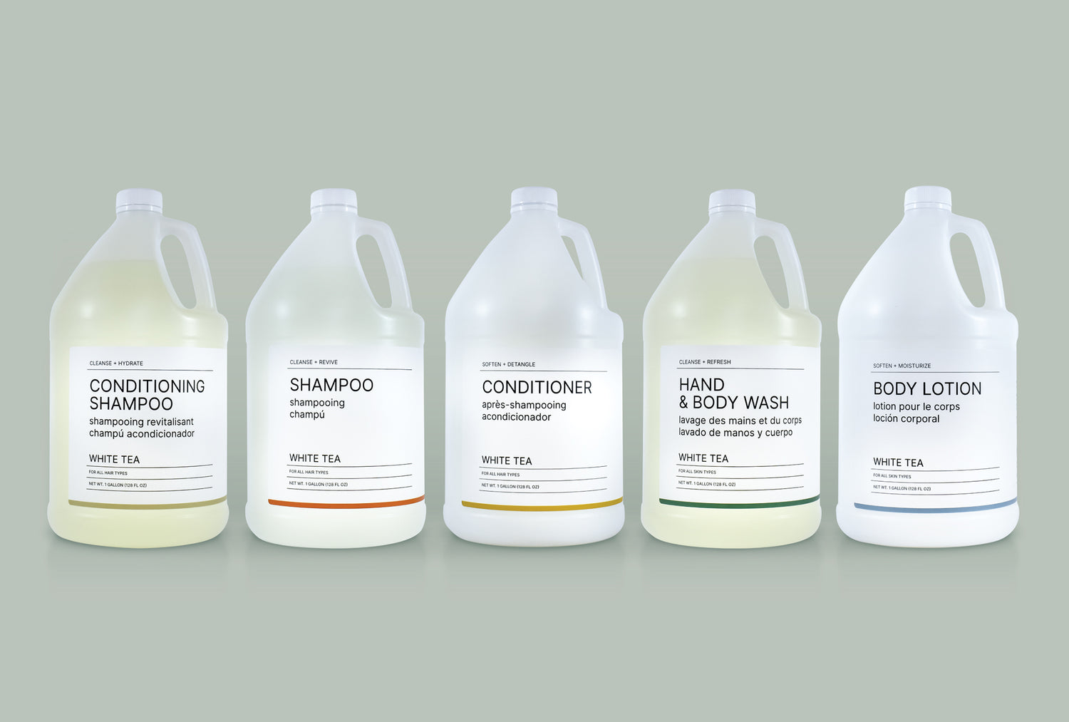 This product provides a soothing and refreshing experience with the elegant aroma of white tea, creating a spa-like atmosphere that promotes relaxation and wellness. These 1-gallon jugs are designed for easy refilling of your amenities with this scented collection, which is formulated to cleanse and rejuvenate all hair and skin types. The convenient size not only saves costs but also helps reduce environmental impact.